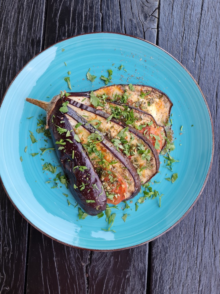 Но…аз днес споделям с всички Вас моя вкусен, лесен, лек и ароматен вариант на патладжан „Ветрило“.