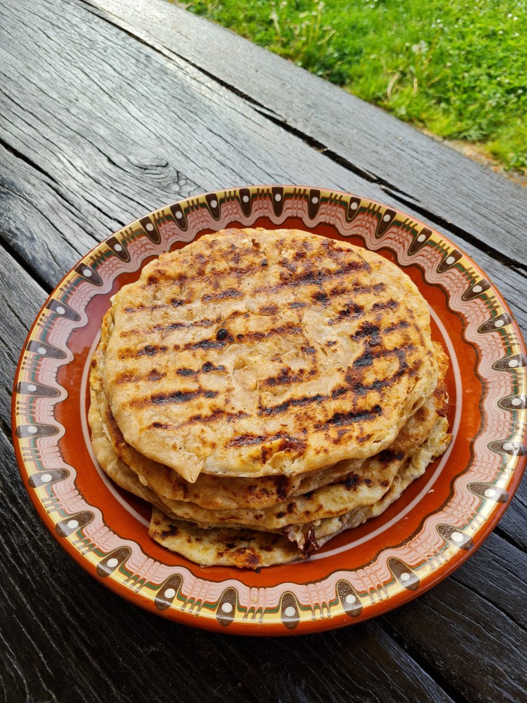 Пека карталачките в горещия и намазнен тиган, като обръщам по два пъти от всяка страна или около общо 5 минути на баничка.