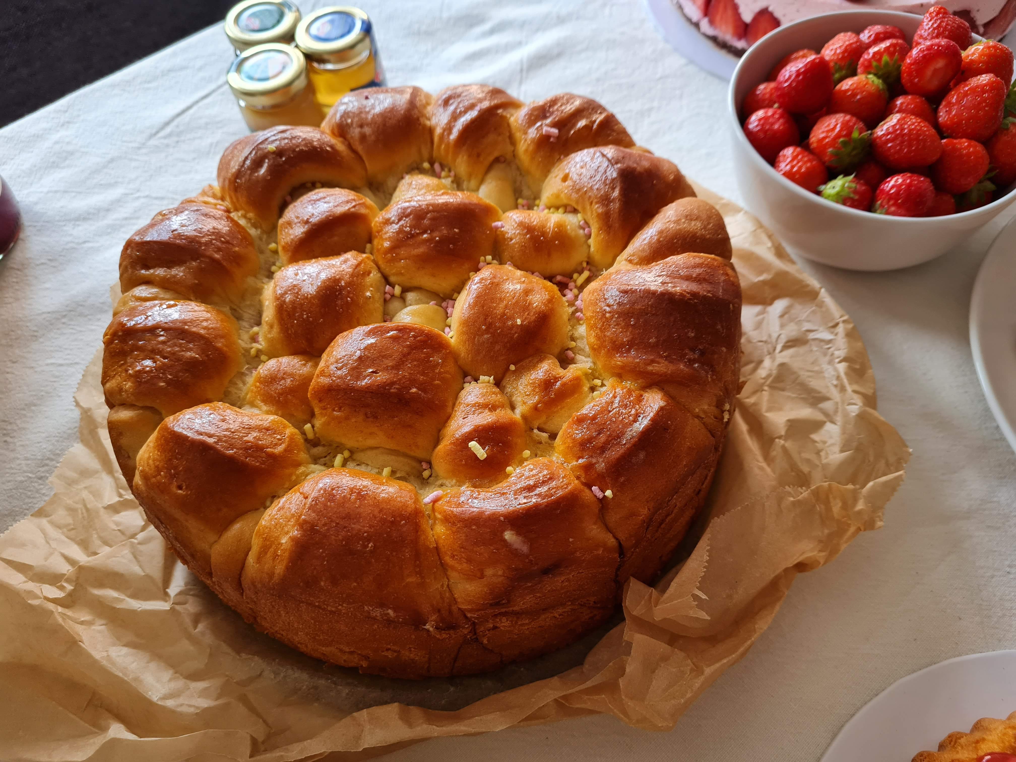 А пък на погачата на моята внучка имаше още сладка погача, чиято рецепта е описана преди 5 години в Ухае на… ето тук.