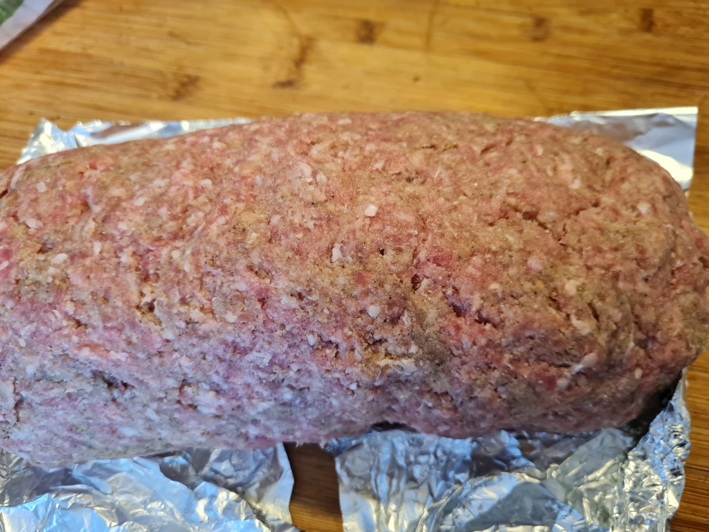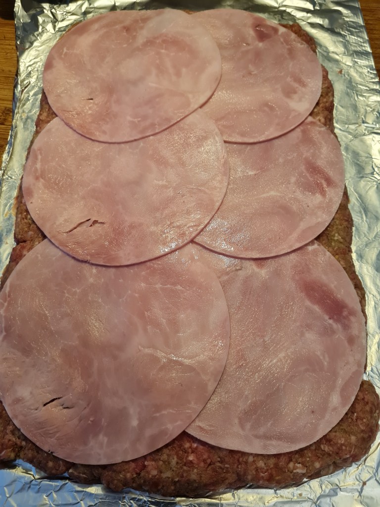 След един час разстилам отлежалата кайма върху алуминиево фолио, като се старая да е с еднаква дебелина навсякъде.
