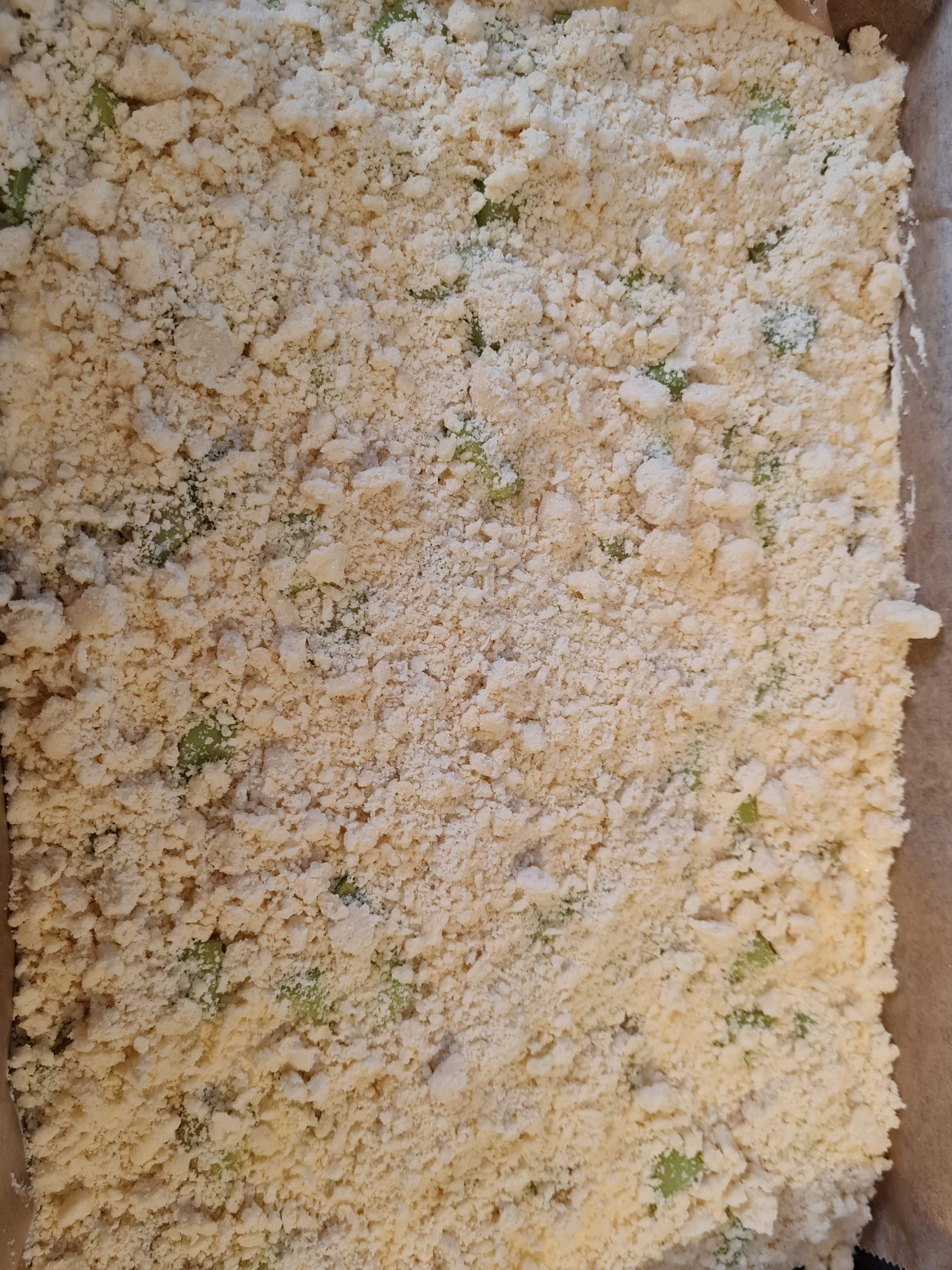 Така, че днес похапнахме огромно количество сладкиш с ревен и хрупкави трохи. Аз гарнирах и с разбита сметана.