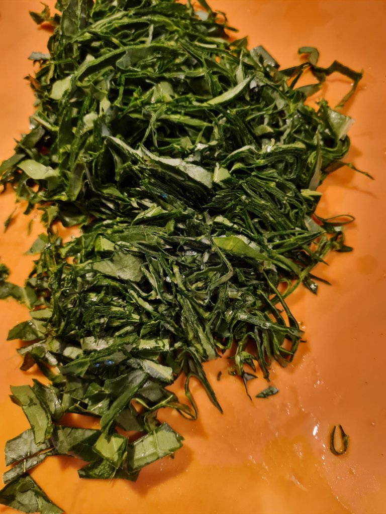 Листата на алабаша измивам, отделям от стеблата (те са много дебели) и нарязвам на тънки ленти.