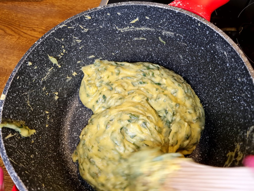 Отделям тенджерата от котлона и изчакам 5 минути, леко да поизстинат.