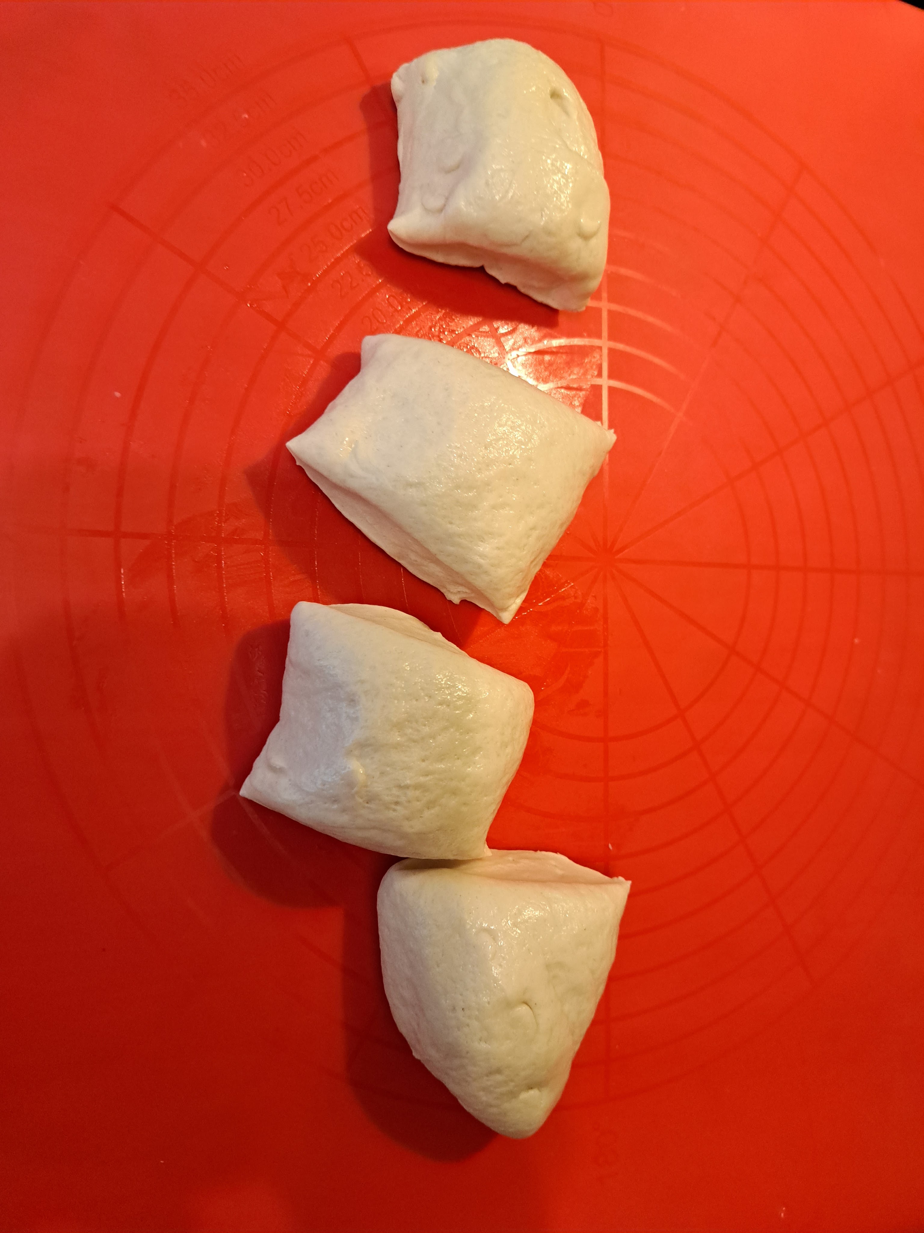 Втасалото тесто също разделям на 4 равни части.