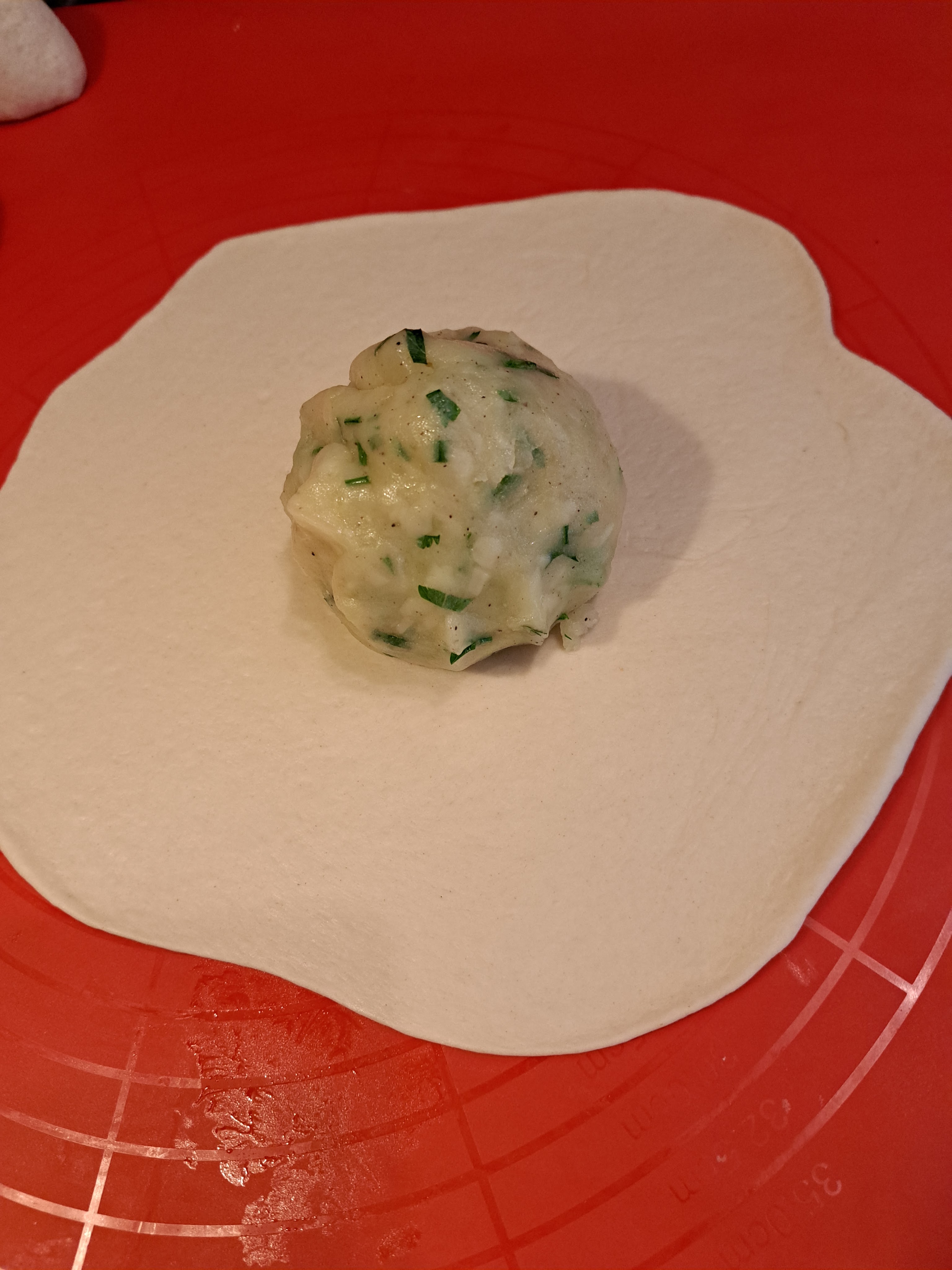 В средата на кората слагам картофената топка.