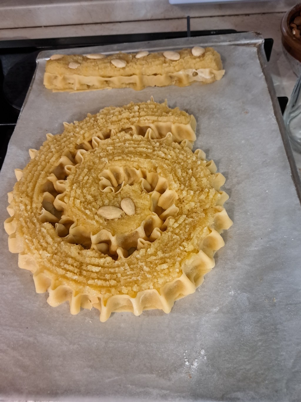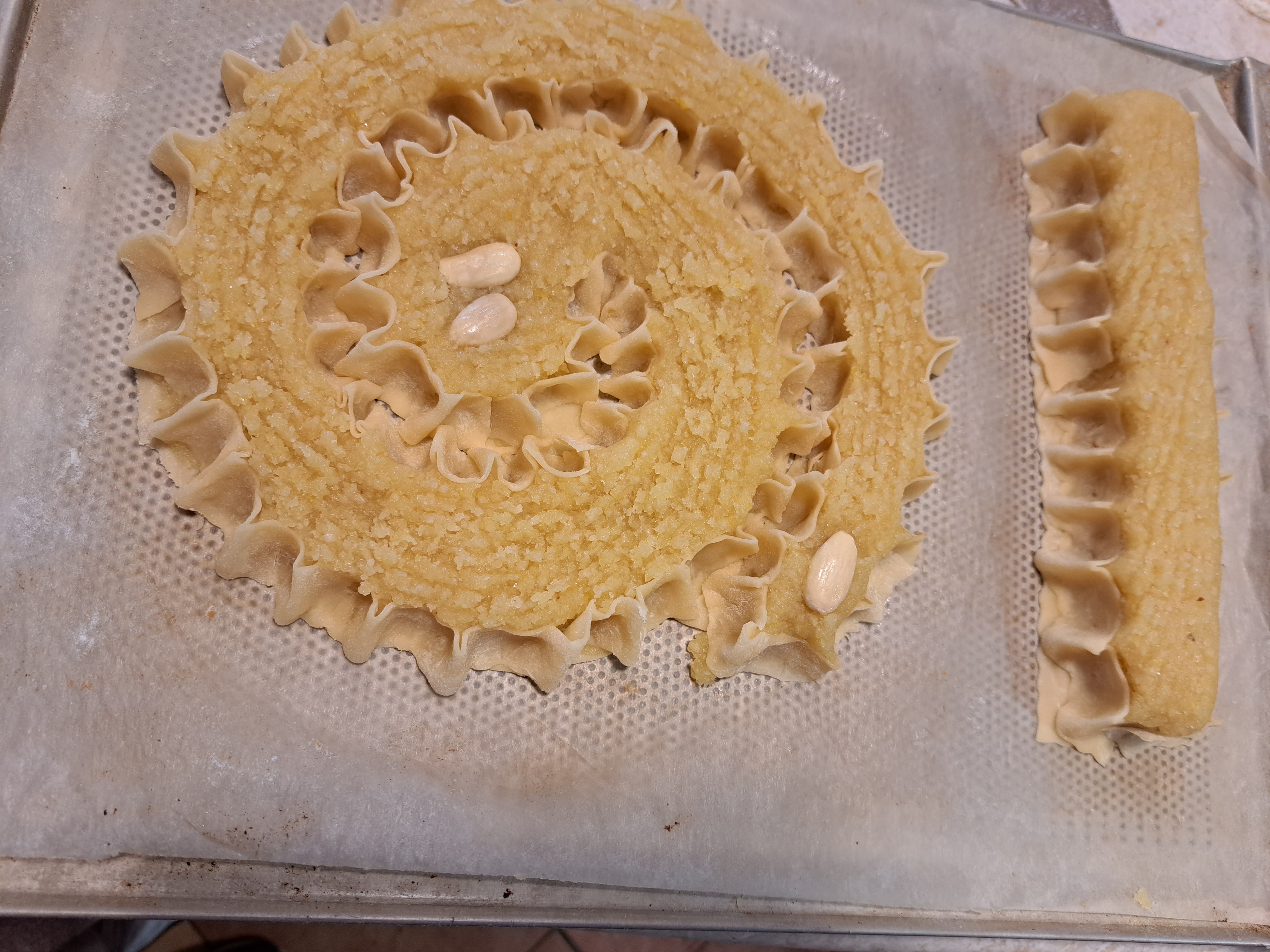 След като тестото престои една нощ, се дели на две или три порции и се разточва на съвсем тънки, почти прозрачни кори.