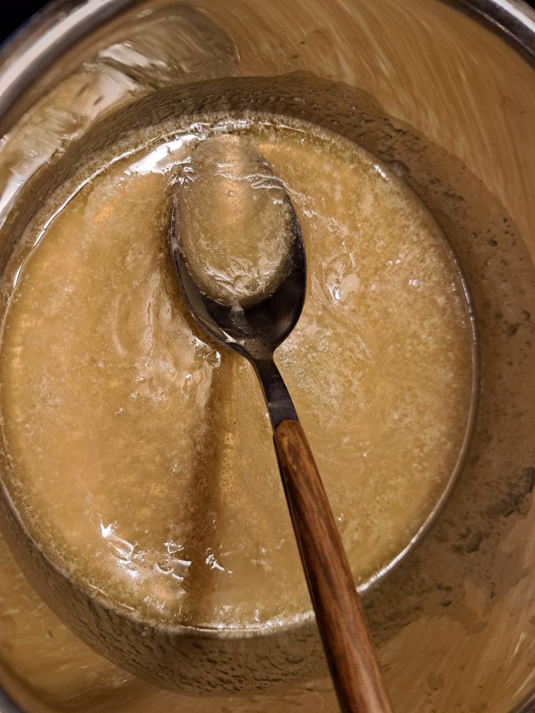 След това си приготвям меденото масло, като за целта смесвам маслото и меда и загрявам само до разтопяването им.