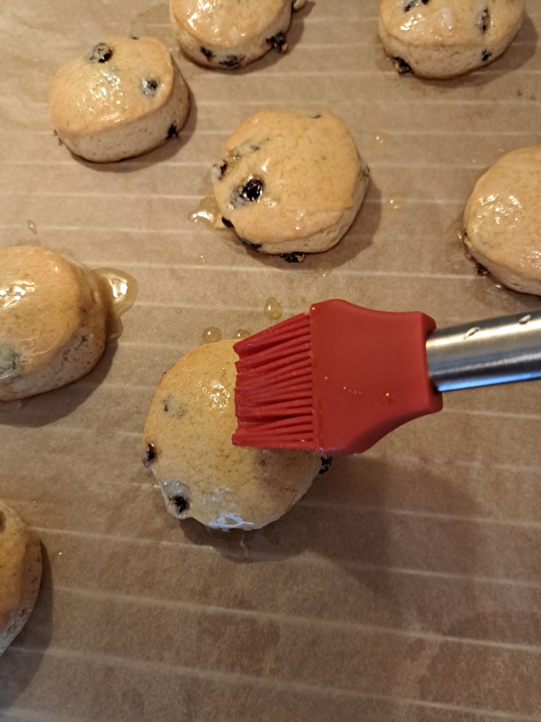 Веднага щом извадя от фурната, намазвам кифличките с меденото масло и оставям да се охладят добре. Така маслото се стяга .