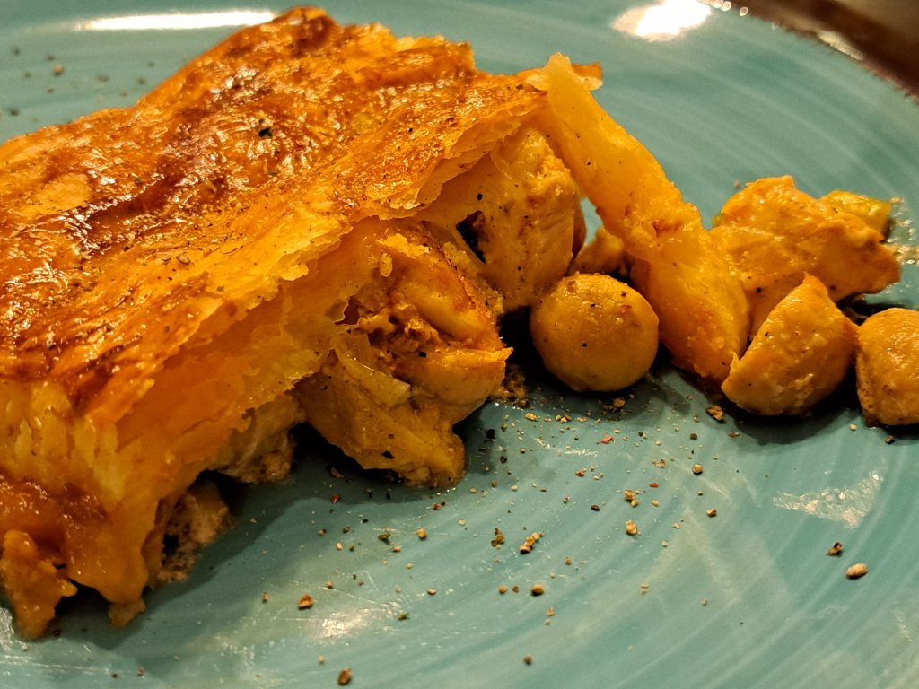 Приготвянето на този бърз английски пай завършва в тавичка, покрита с бутер тесто.