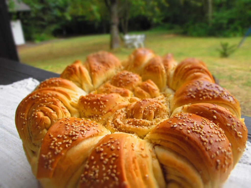 Нужно е да следвате рецептата ЕТО ТУК и да направите две снимки. Една на готовата питка и една на начина на подреждане на тестото в тавата. В рецептата са дадени няколко варианта. Вие просто си избирате един. Няма значение кой.