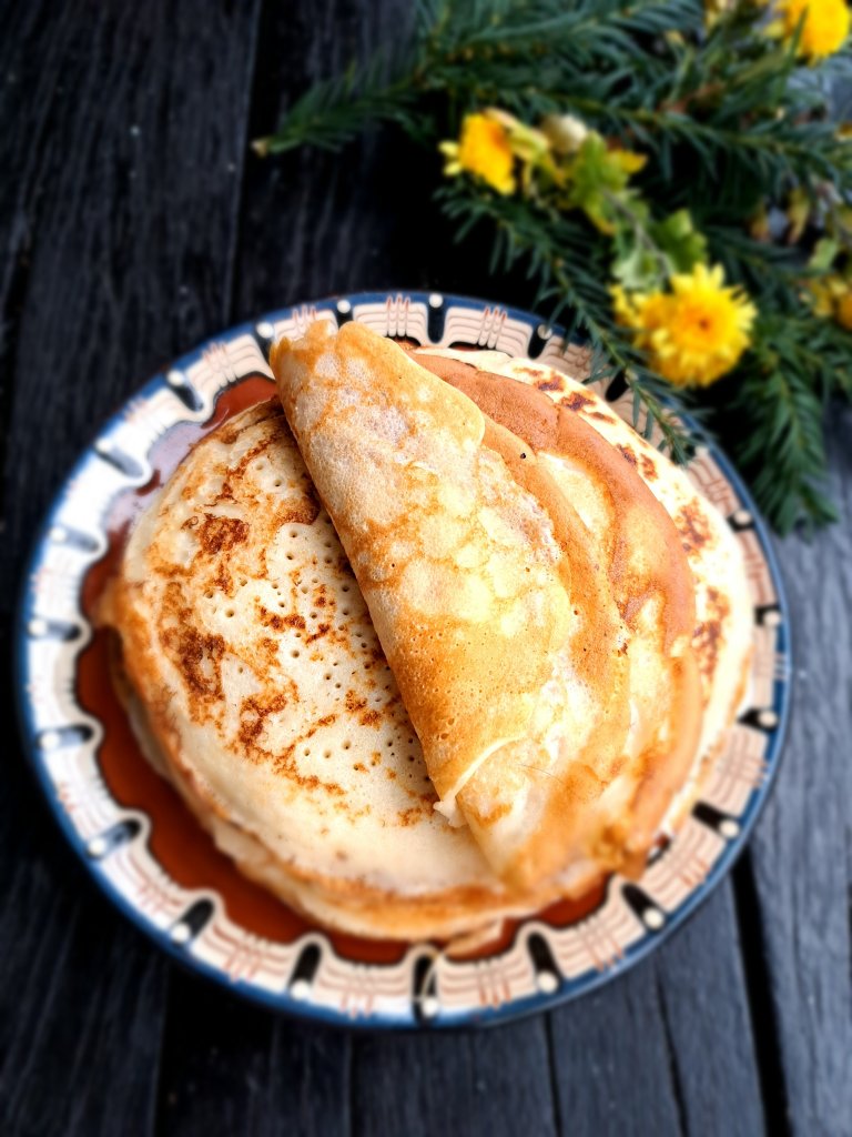 Палачинките приготвям по рецептата на мама един ден по-рано. Рецептата е тук