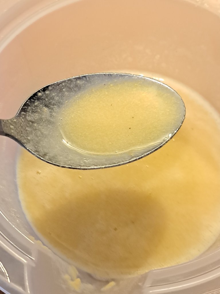 За целта спазвам указанията на опаковката и 20 г яйчен прах смесвам с 200 мл газирана вода. Разбърквам и изчаквам 5 – 6 минути.