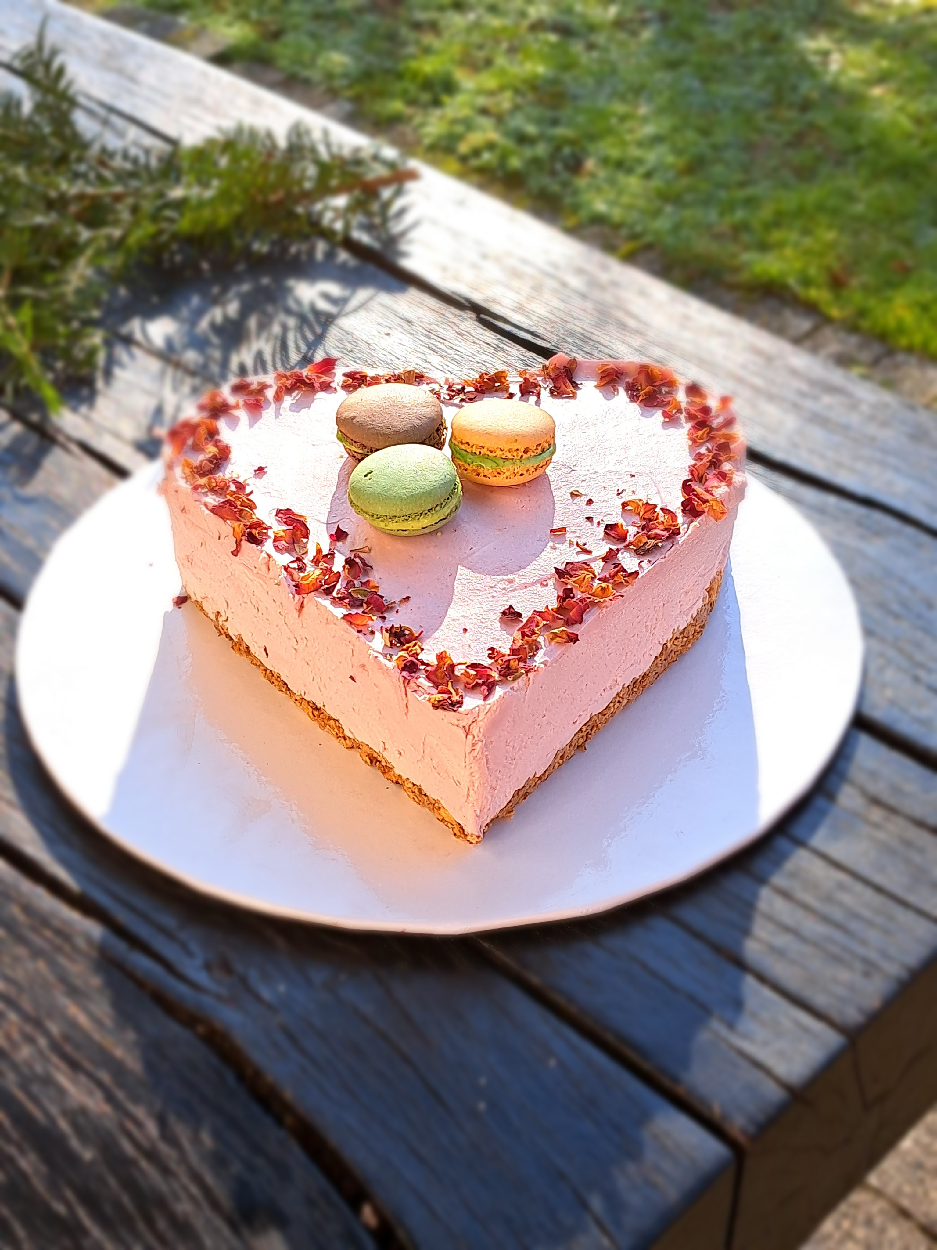 Декорирам с изсушени розови листенца и домашно приготвени френски макарони , слепени с крем от шам фъстък. И двете рецепти са част от Ухае на…