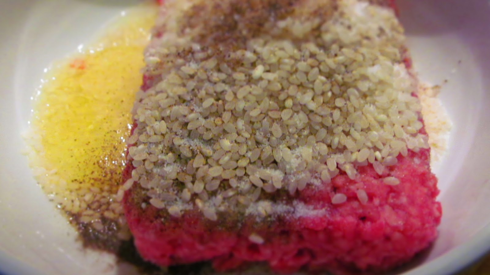 - В подходяща по размер купа смесвам каймата, ориза, белтъка на две от яйцата, сол и черен пипер на вкус.