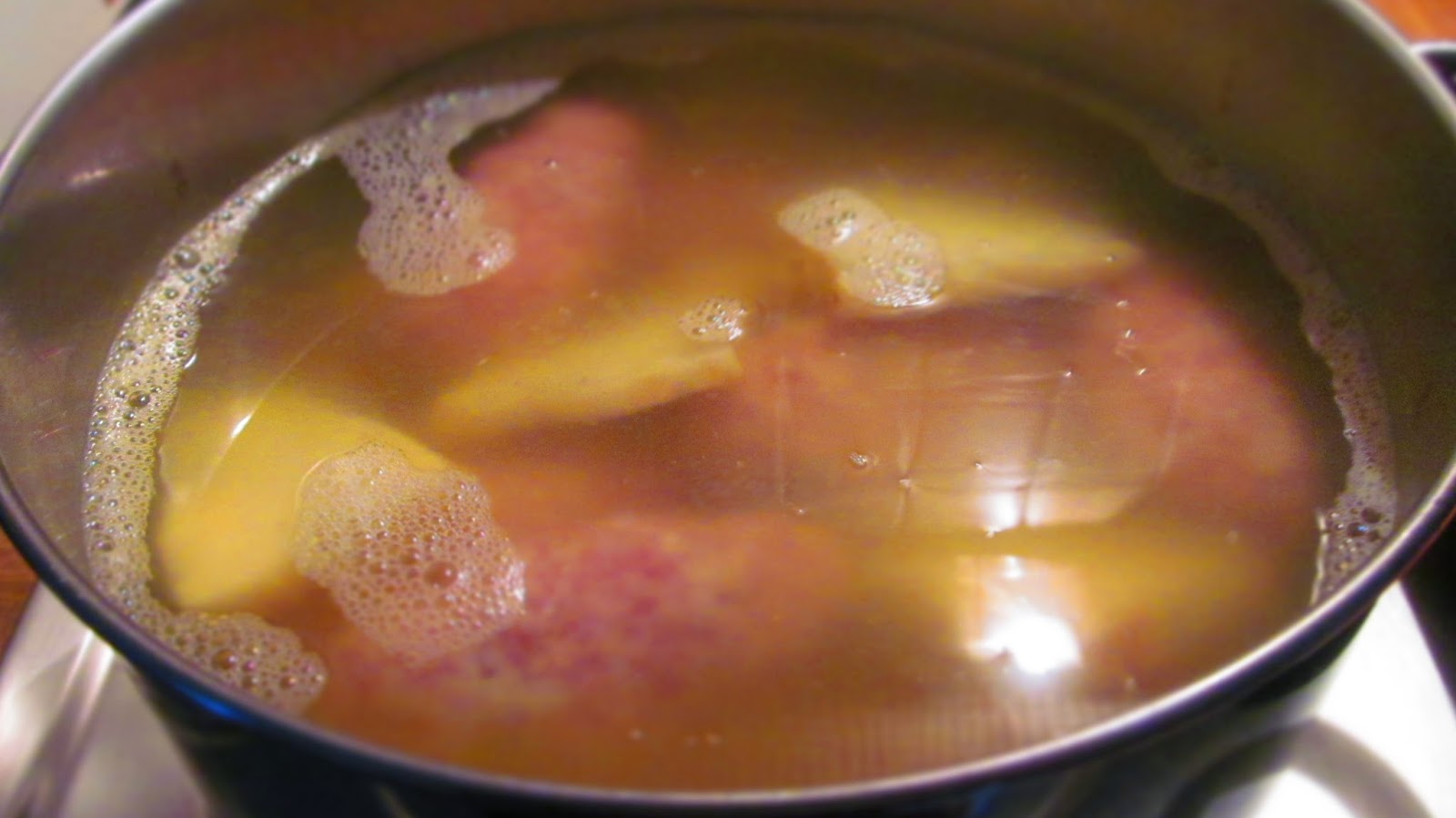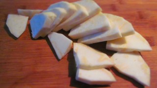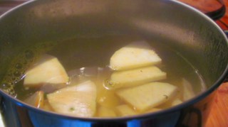 - Във 1 л. вряща, подсолена вода пуснах целината, предварително обелена, измита и нарязана на осминки.