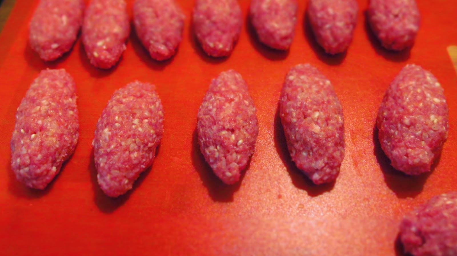 - От добре омесената кайма оформям около 13 на брой кюфтенца, които са с продълговата форма.