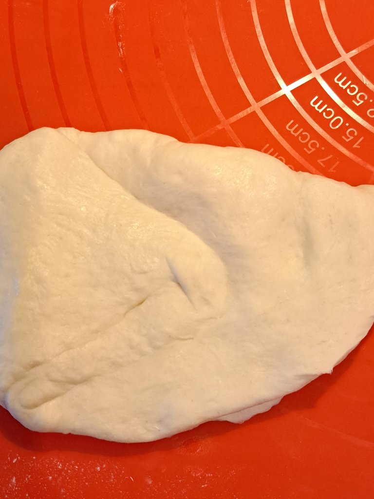 Похлупвам тестото до половината, притискам, пак прехлупвам, притискам и така поне 5 пъти. Накрая пак оформям на топка. Тук е важно да работите нежно, за да не Ви излиза маслото.
