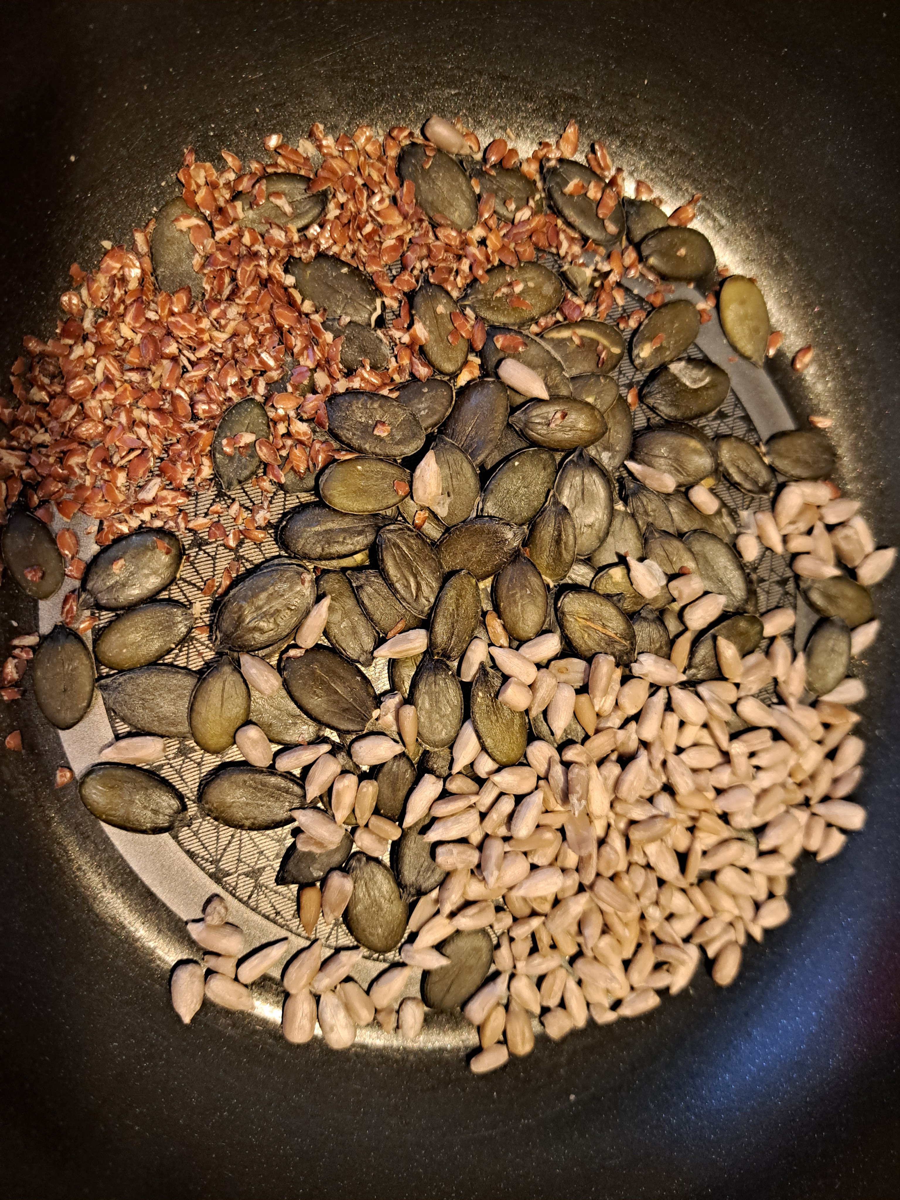 Всички семена запичам в сух тиган за кратко.
