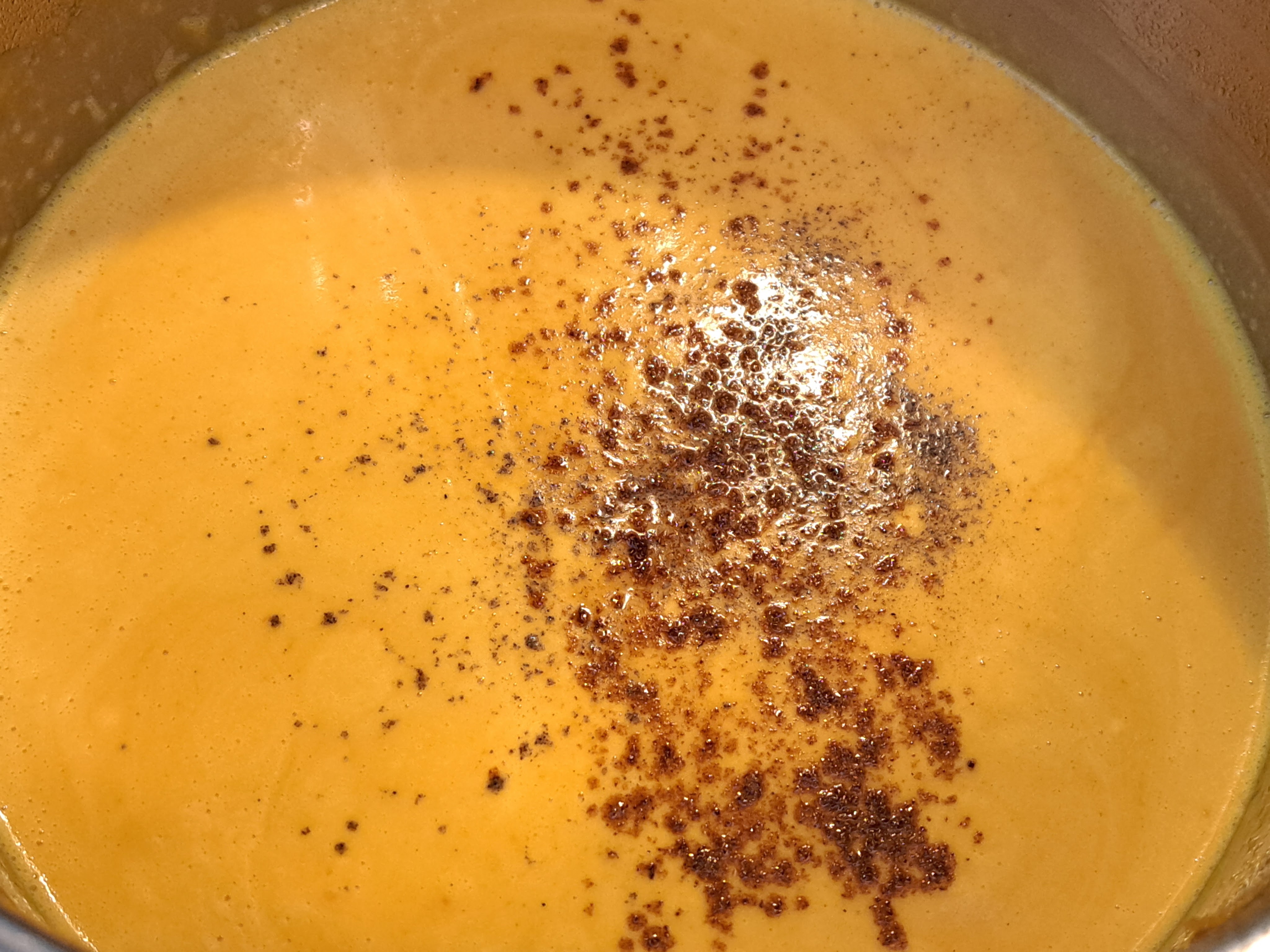 Омекналите зеленчуци пюрирам и добавям към тях сметаната. Разбърквам и варя още 1 минута.