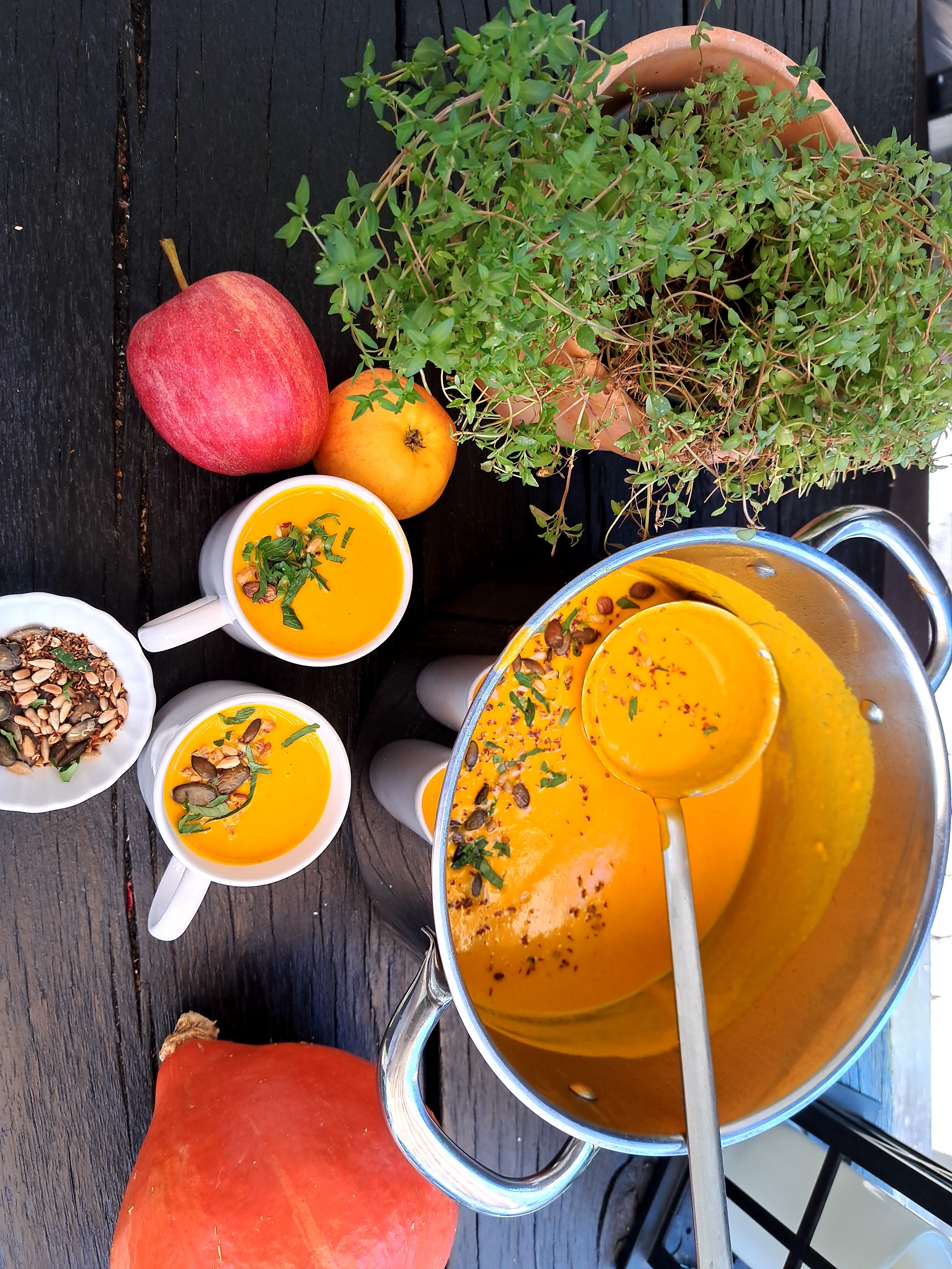 Любимата ми тиква! Любимата ми супа за есента. Живея в планината Hunsrück и тук е време за бране на ябълките.